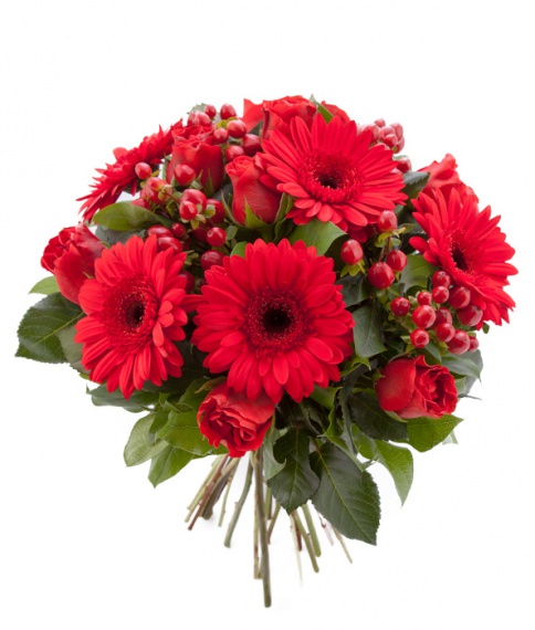 Состав: Гиперикум красный - 7, Салал - 20, Роза Эль Торо - 9, Гербера красная - 5